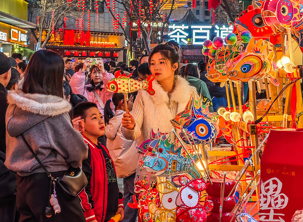 Посетителите се наслаждават на местни закуски, докато оценяват нематериалното наследство на пазар в Хефей, провинция Анхуей, на 22 февруари 2026 г. [Photo/VCG]