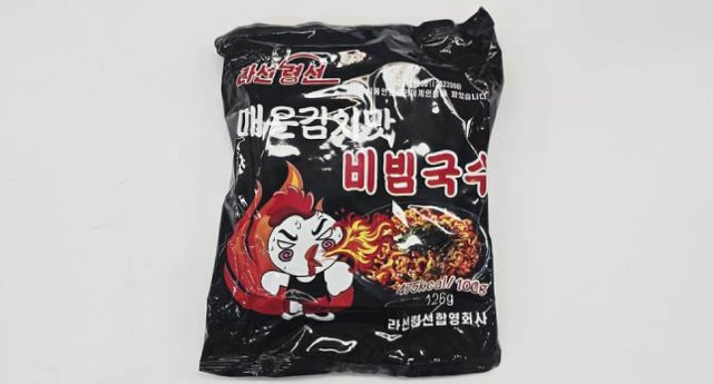 Опаковката на севернокорейските пикантни юфки Kimchi Bibim. Снимка: Kang Dong-wanОпаковката на севернокорейските пикантни юфки Kimchi Bibim. Снимка: Kang Dong-wan