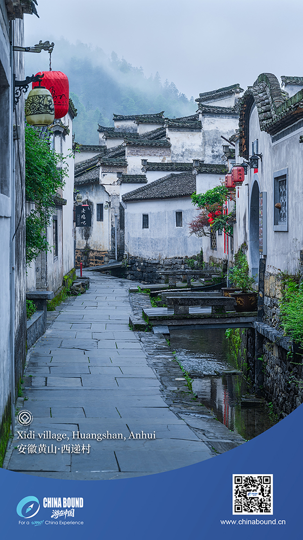 Сгушено в сърцето на Huizhou в южното подножие на планината Huangshan, село Xidi е един от най-добрите живи примери за това наследство. Веднъж оформено и поддържано от семействата Huishang, селото запазва техните архитектурни идеали – павирани с камък алеи, варосани стени и черни плочки с фронтони с конски глави. В пролетния дъжд този обект от световното културно наследство лежи тихо сред мъгливи зелени хълмове, показвайки непреходната красота и културна дълбочина на Хуейджоу.