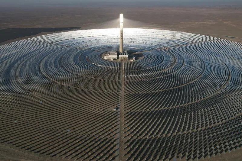 Въздушен изглед на слънчева топлинна електроцентрала тип кула от разтопена сол в Jiuquan, провинция Gansu, на 3 декември 2025 г. [Photo/Xinhua]