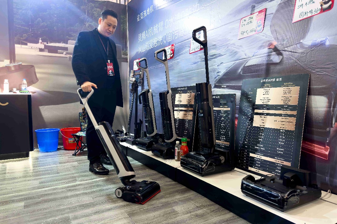 Служител на Dreame Technology демонстрира прахосмукачка по време на 58-ото Home China Expo в Шанхай на 16 март. [Photo provided to China Daily]